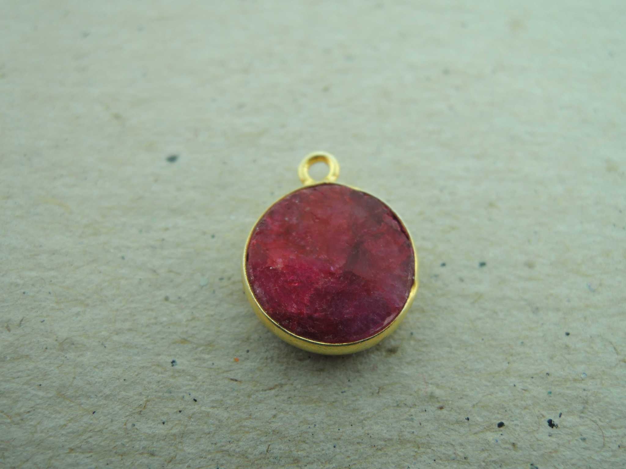 HG0037 HANGER Ag925 VERGULD RUBY ROOS 12MM ROND MET KAST MET OOG