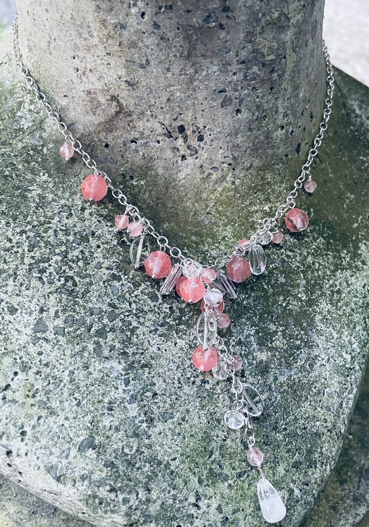 KZ0023 KETTING AG925 KRISTAL/KWARTS ROOS +-50CM