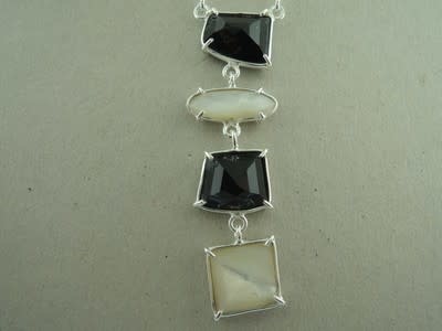 KZ0036 Ag925 PAREL/ONIX WIT/ZWART 5.5CM ONREGELMATIG