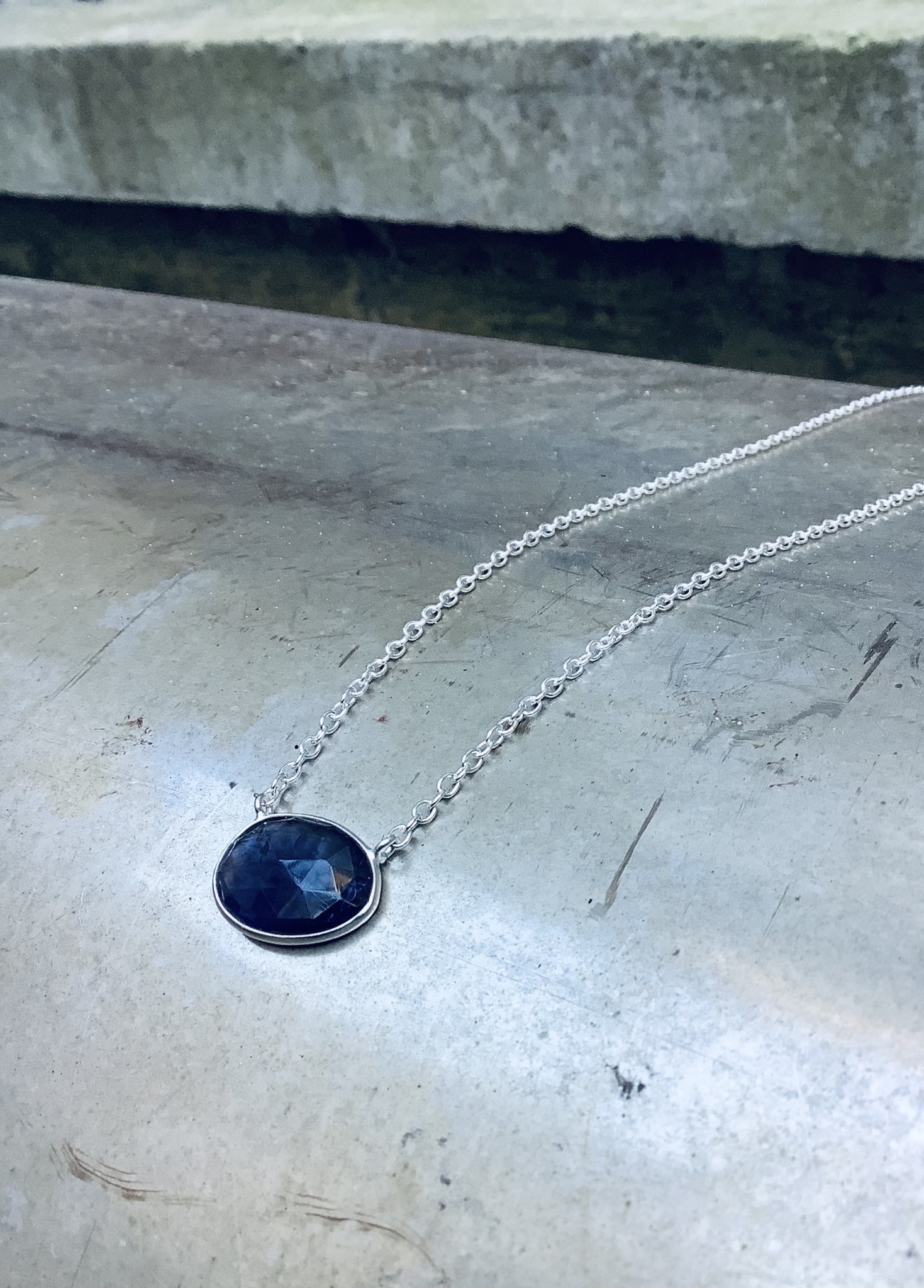 KZ0038 Ag925 KETTING IOLIET BLAUW 20X15MM OVAAL 2 OGEN