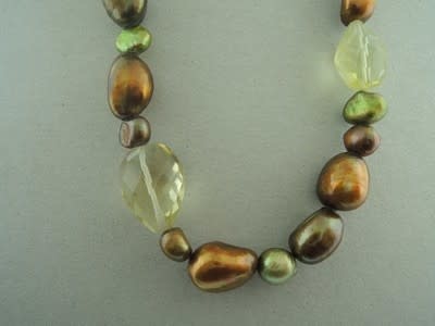 KZ0057 KETTING AG925 PAREL/CITRIEN GROEN/GEEL +-42CM