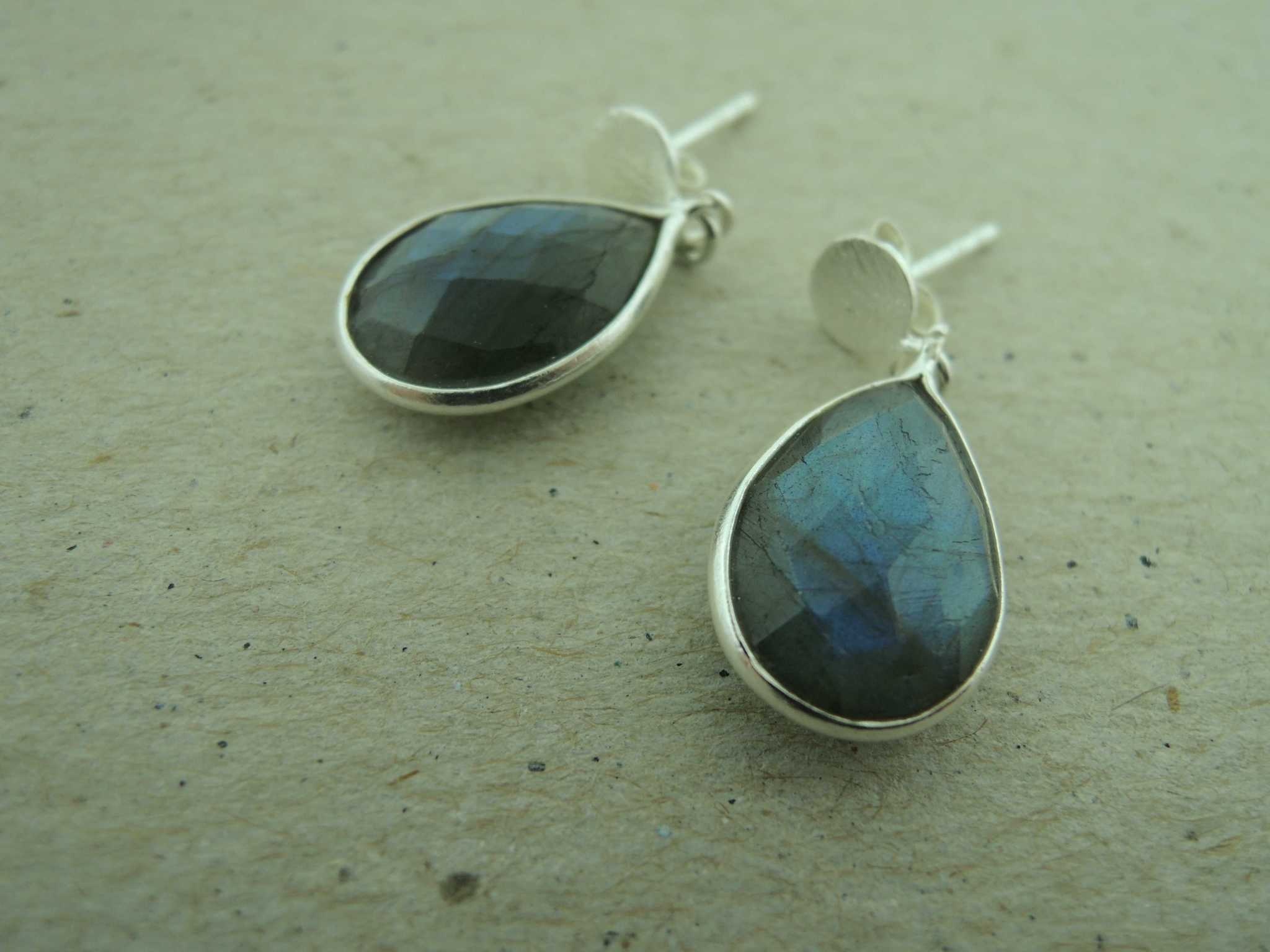 OZ0044 OORSTEKER Ag925 LABRADORIET GRIJS 15X10MM DRUPPEL