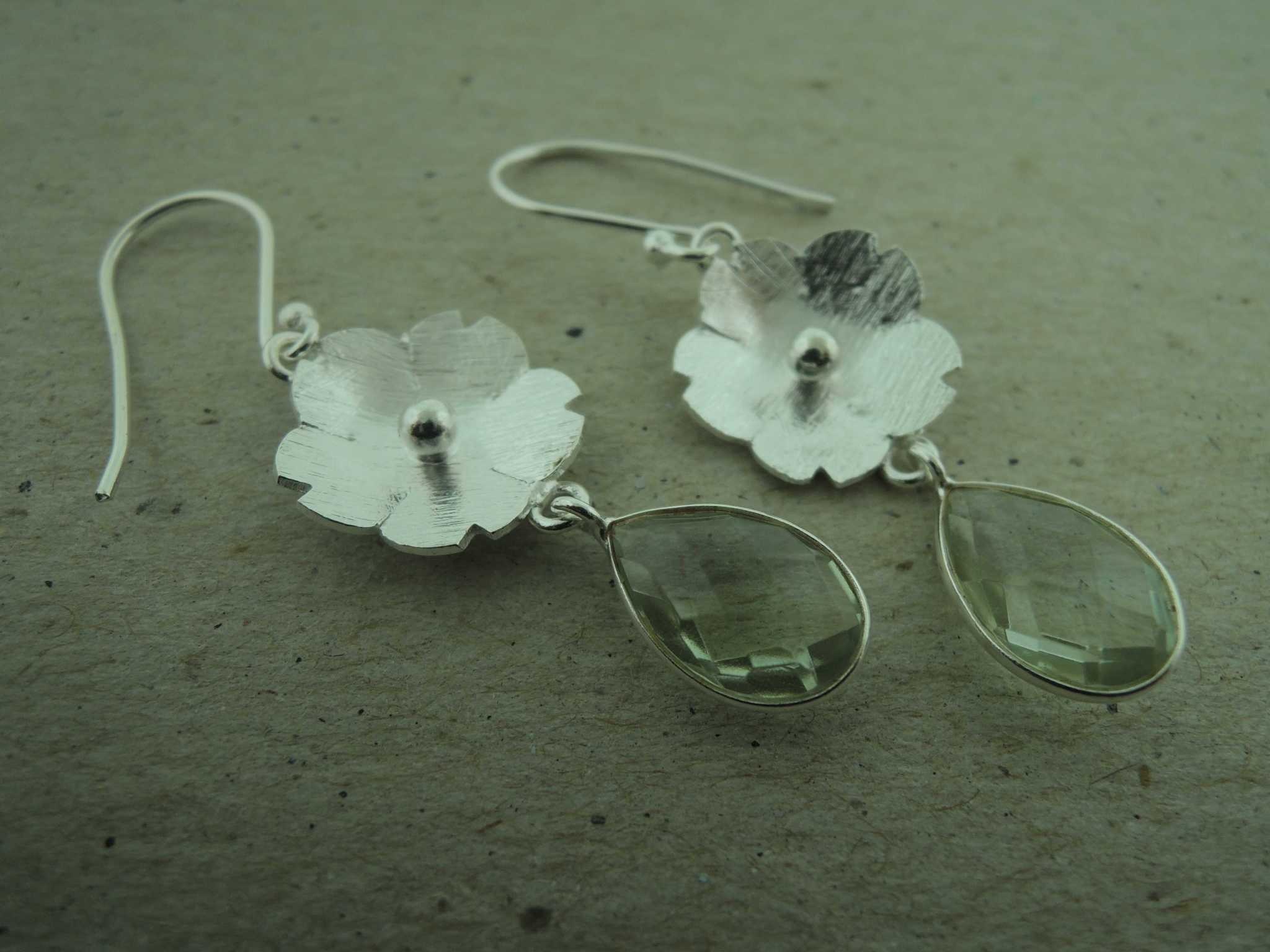 OZ0907 OORHAAK Ag925 AMETHIST GROEN 4CM BLOEM/DRUPPEL