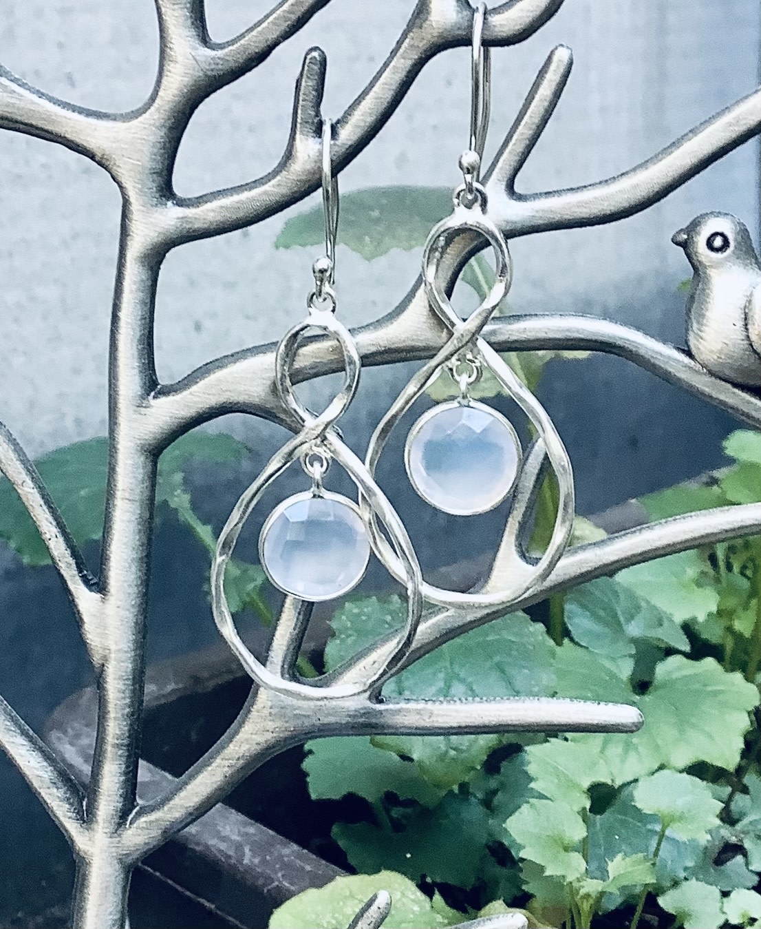 OZ0746 OORHAAK CHALCEDOON GRIJS 4CM ROND/DRUPPEL