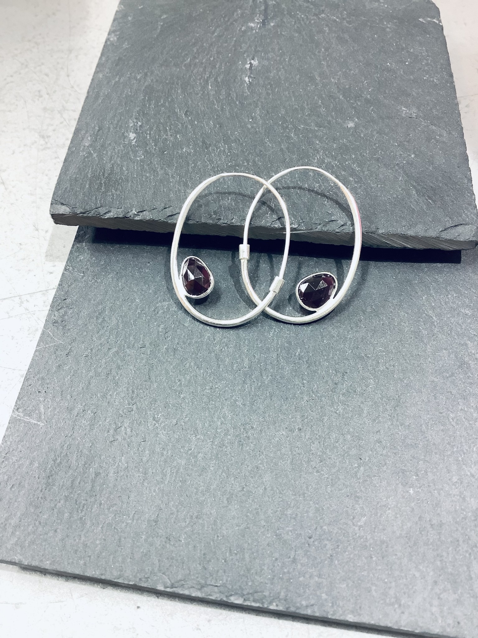 OZ0777 CREOOL Ag925 GRANAAT ROOD 3.5CM OVAAL