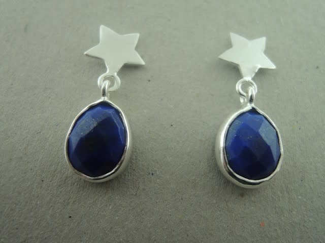 OZ0812 OORSTEKER Ag925 LAPIS LAZULI BLAUW 2CM STER/DRUPPEL