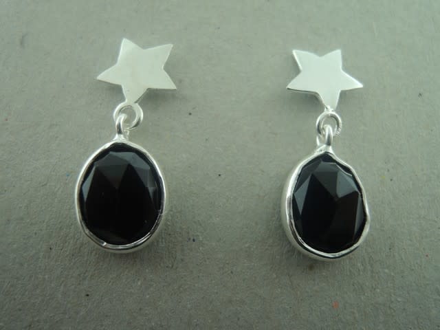 OZ0813 OORSTEKER Ag925 ONIX ZWART 2CM STER/DRUPPEL