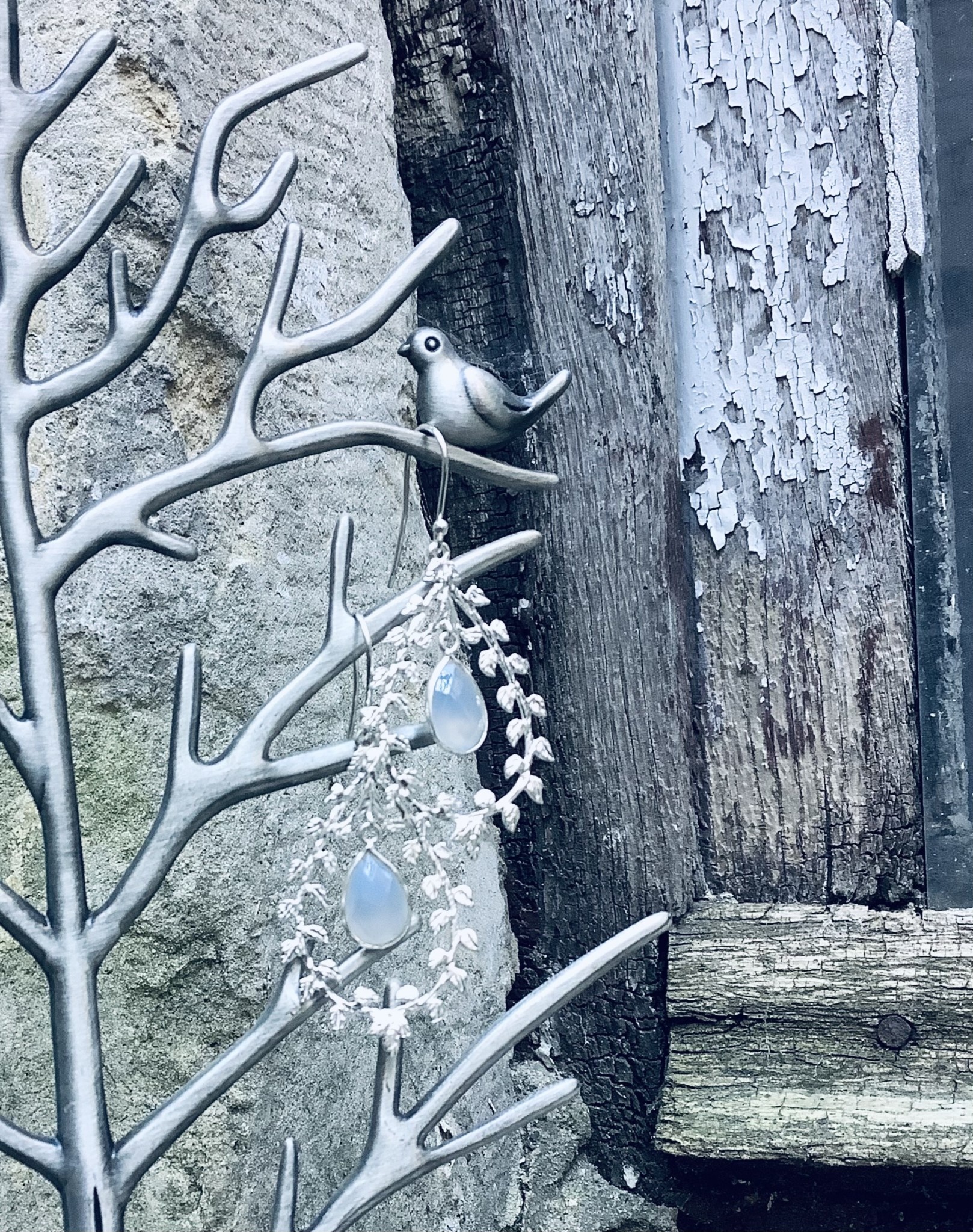 OZ0821 OORHAAK Ag925 CHALCEDOON BLAUW 4CM DRUPPEL