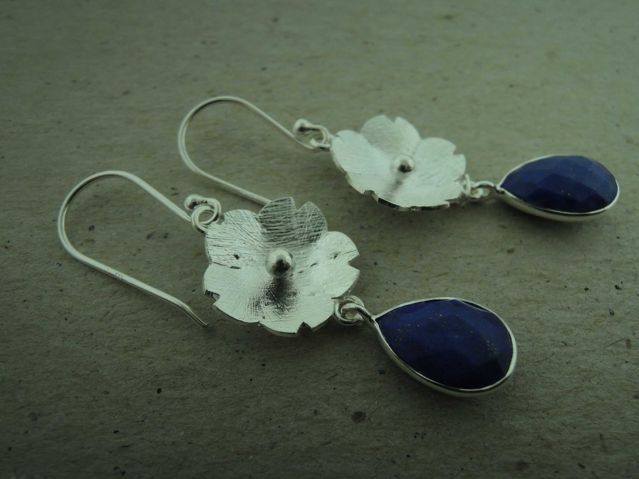 OZ0909 OORHAAK Ag925 LAPIS LAZULI BLAUW 4CM BLOEM/DRUPPEL