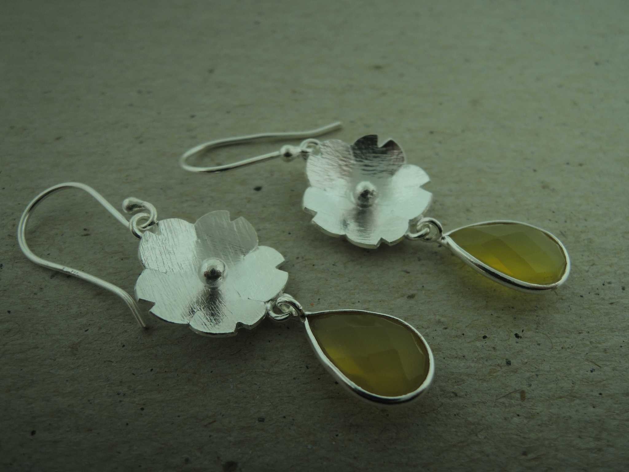 OZ0908 OORHAAK Ag925 LEMON TOPAAS GEEL 4CM BLOEM/DRUPPEL