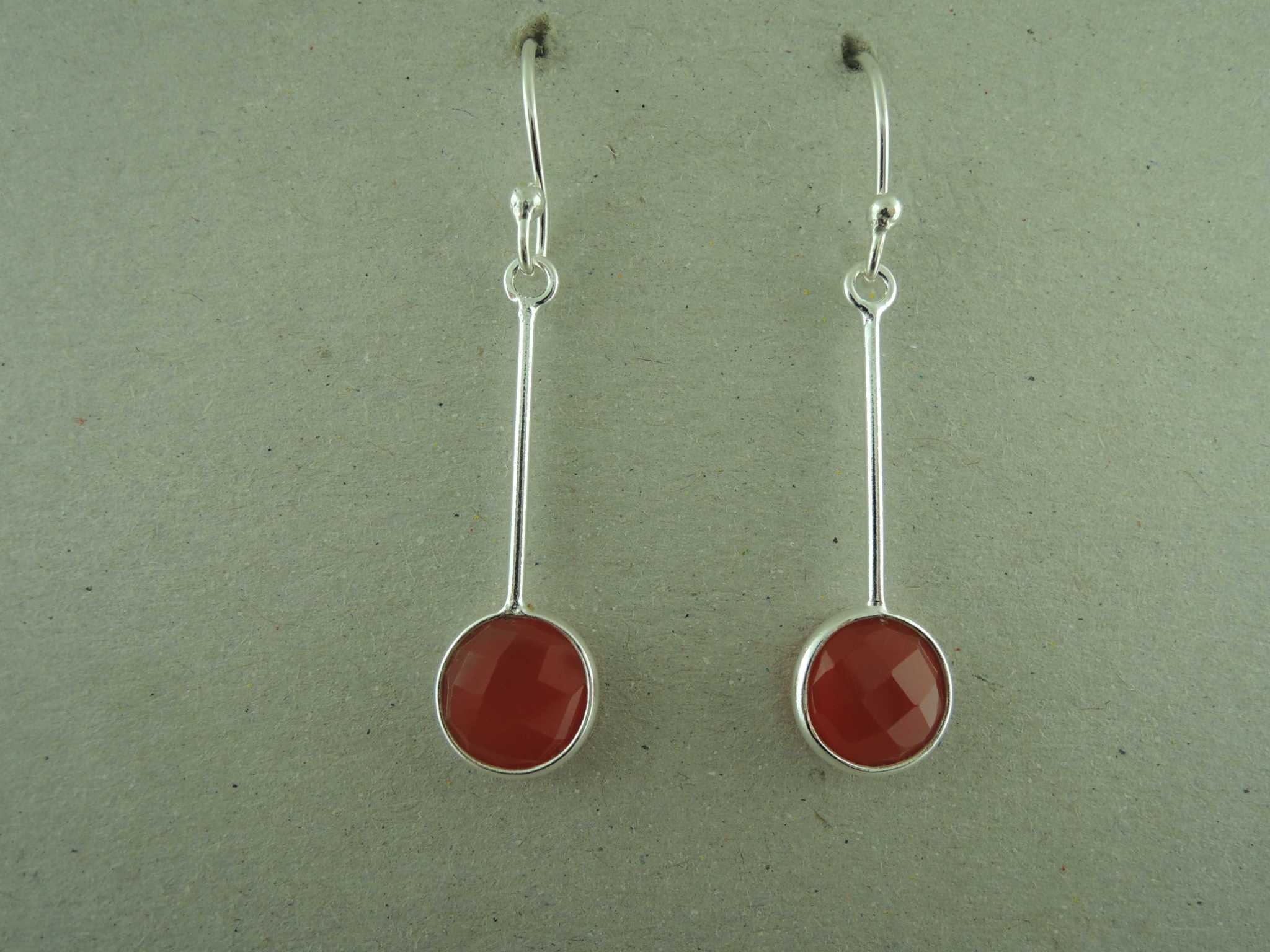 OZ0927 OORHAAK Ag925 CARNEOOL ORANJE 4CM STAAFJE+10MM ROND
