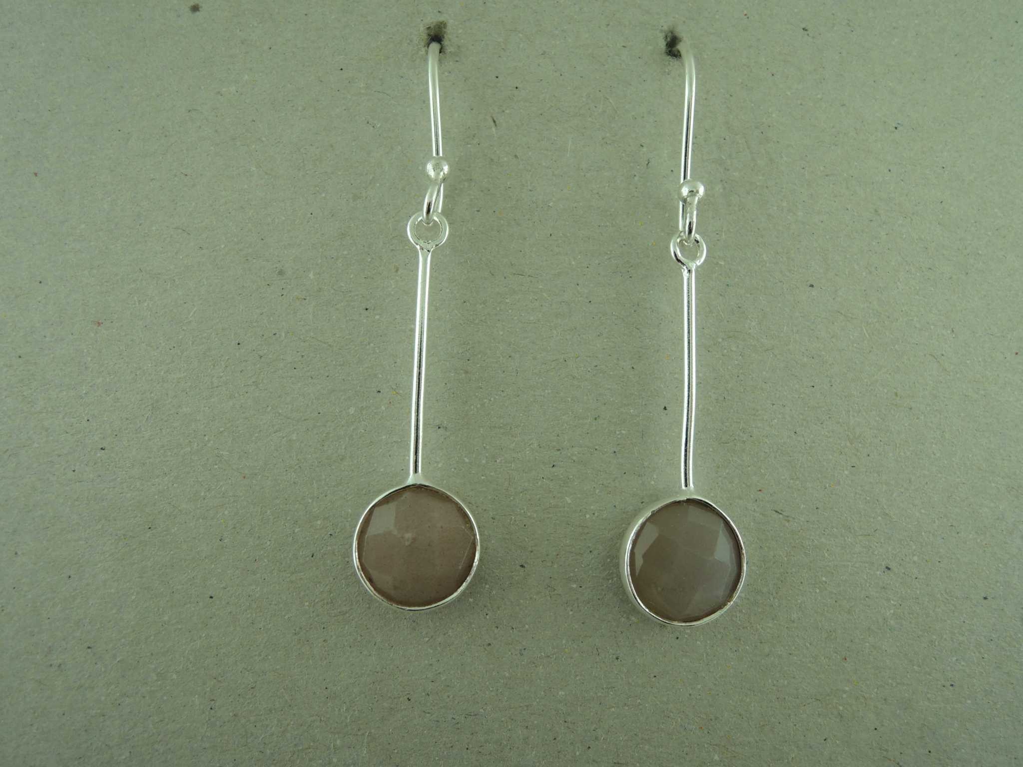 OZ0934 OORHAAK Ag925 MAANSTEEN ROOS 4CM STAAFJE+10MM ROND