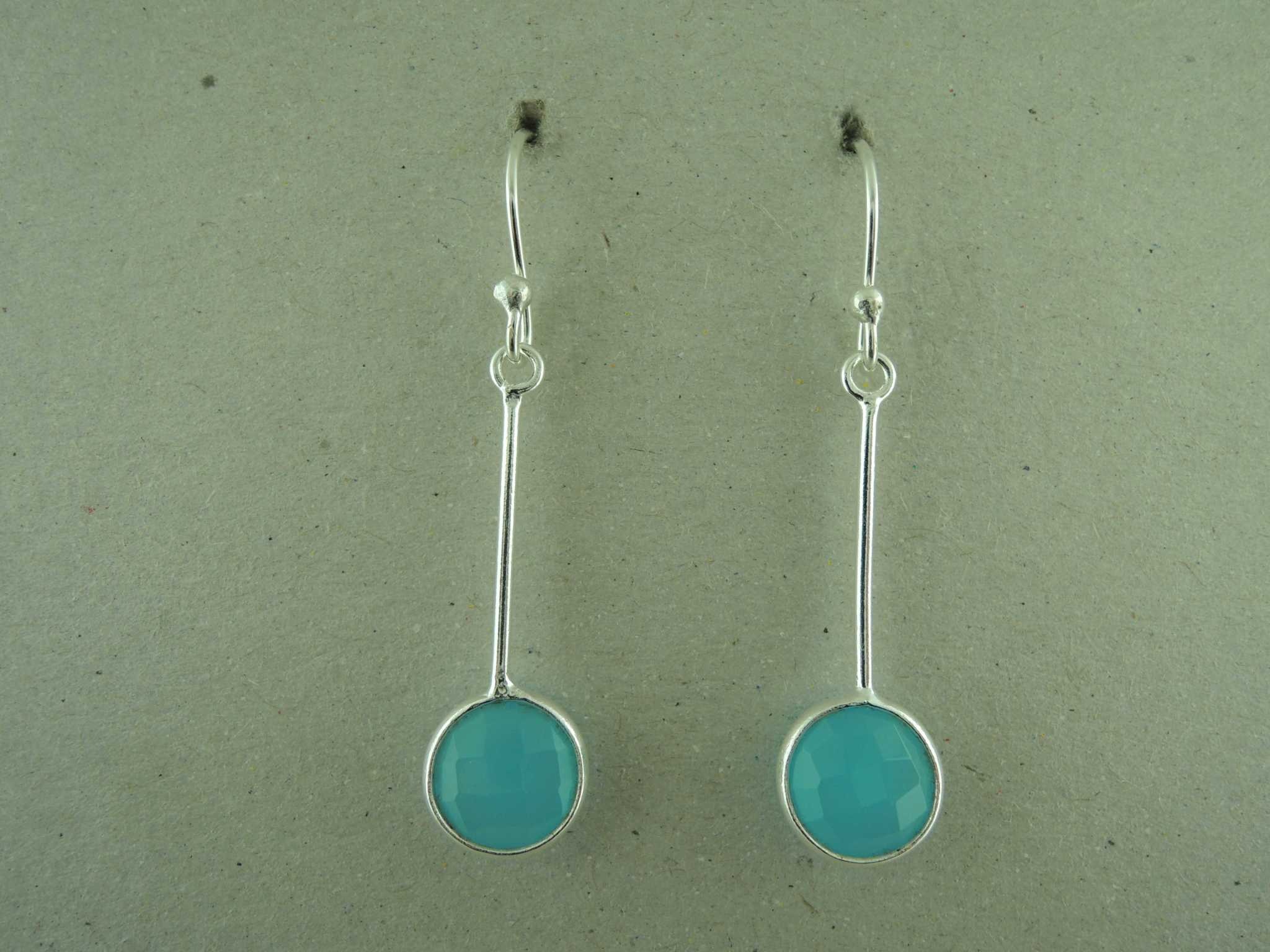 OZ0935 OORHAAK Ag925 CHALCEDOON BLAUW 4CM STAAFJE+10MM ROND