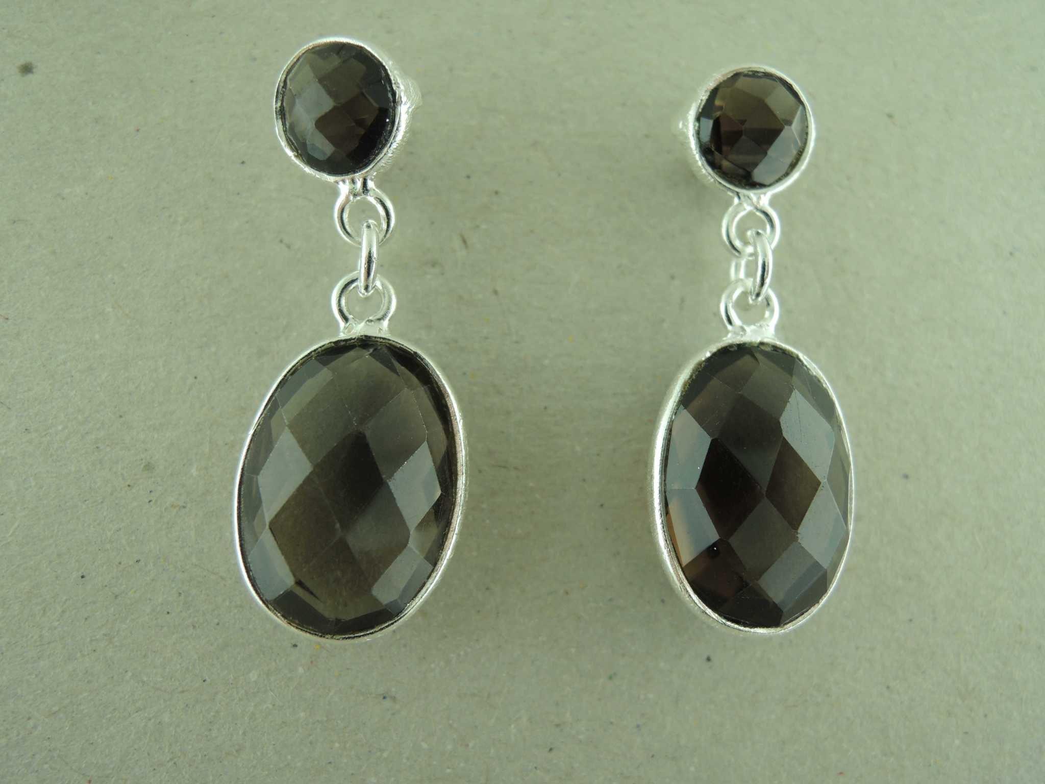 OZ0945 OORSTEKER Ag925 ROOKKWARTS BRUIN 3CM 7MM ROND + 15MM OVAAL
