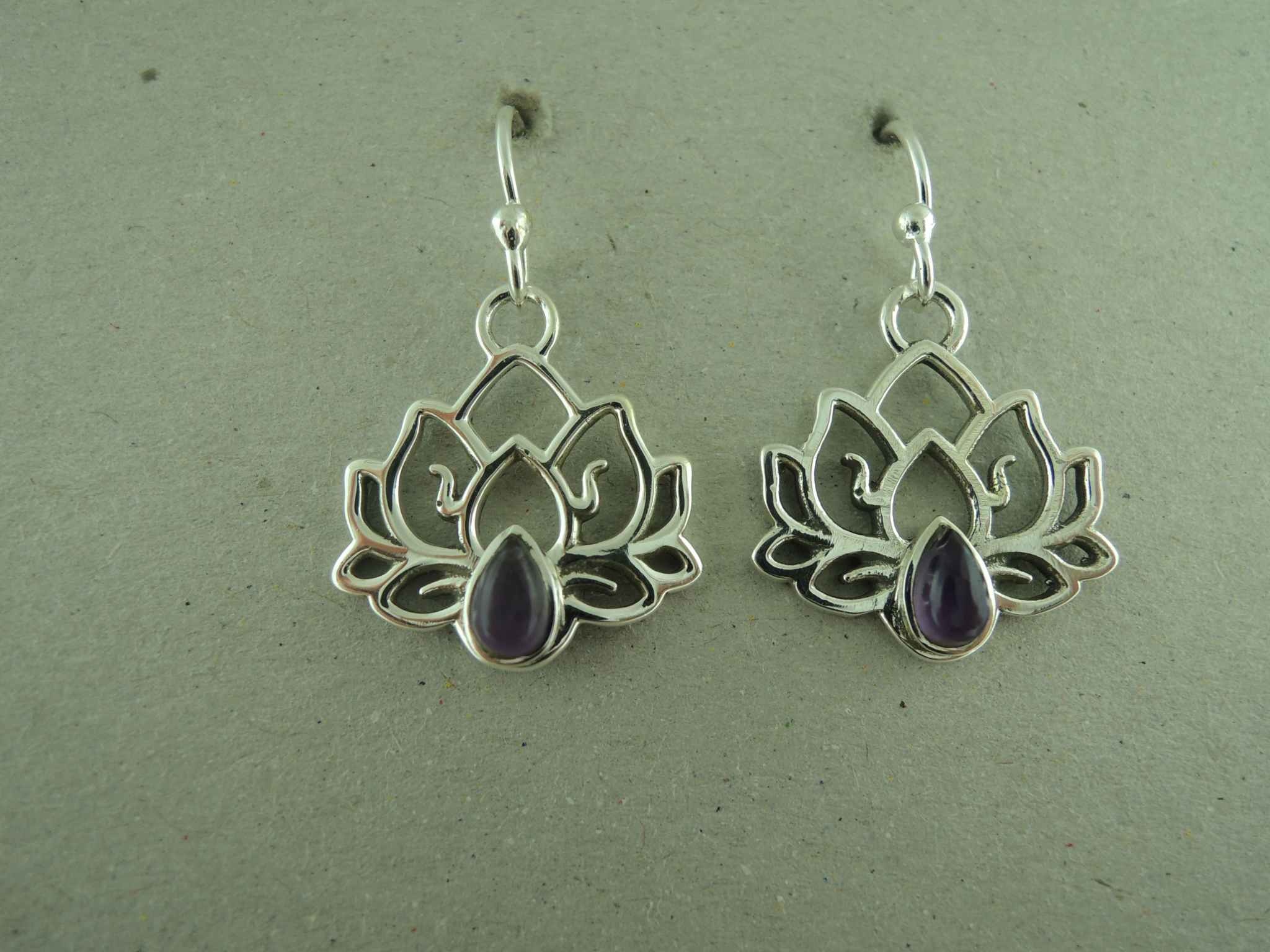 OZ0963 OORHAAK Ag925 LOTUS 16MM AMETHIST PAARS DRUPPEL 7MM