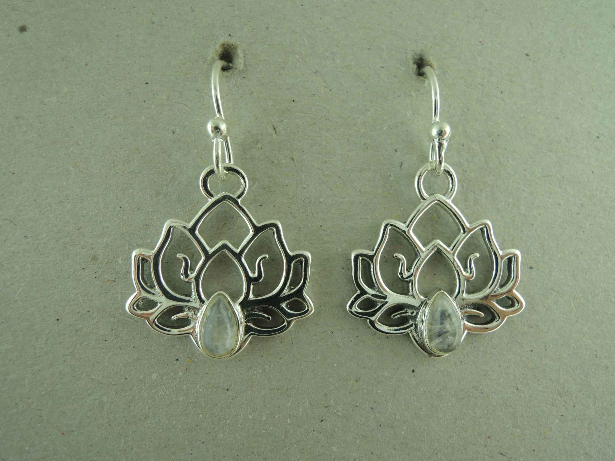 OZ0965 OORHAAK Ag925 LOTUS 16MM MAANSTEEN WIT DRUPPEL 7MM
