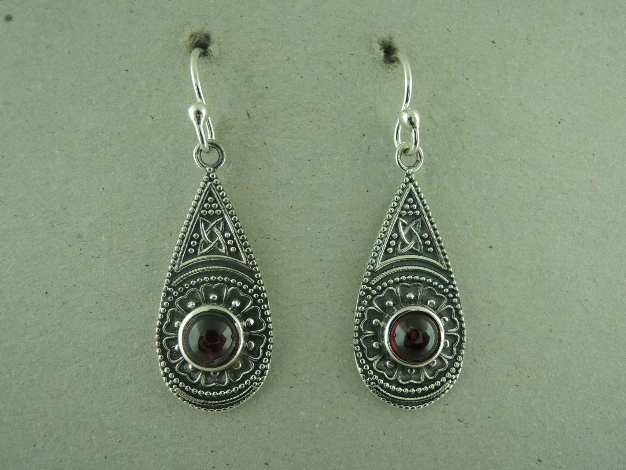 OZ0996 OORHAAK Ag925 DRUPPEL 23MM GRANAAT ROOD ROND 6MM