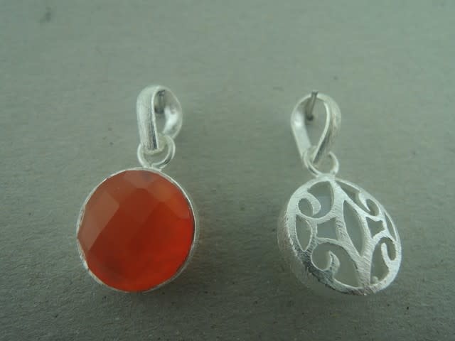 PZ0043 HANGER Ag925 CARNEOOL ORANJE 13MM ROND GEBRUSHED
