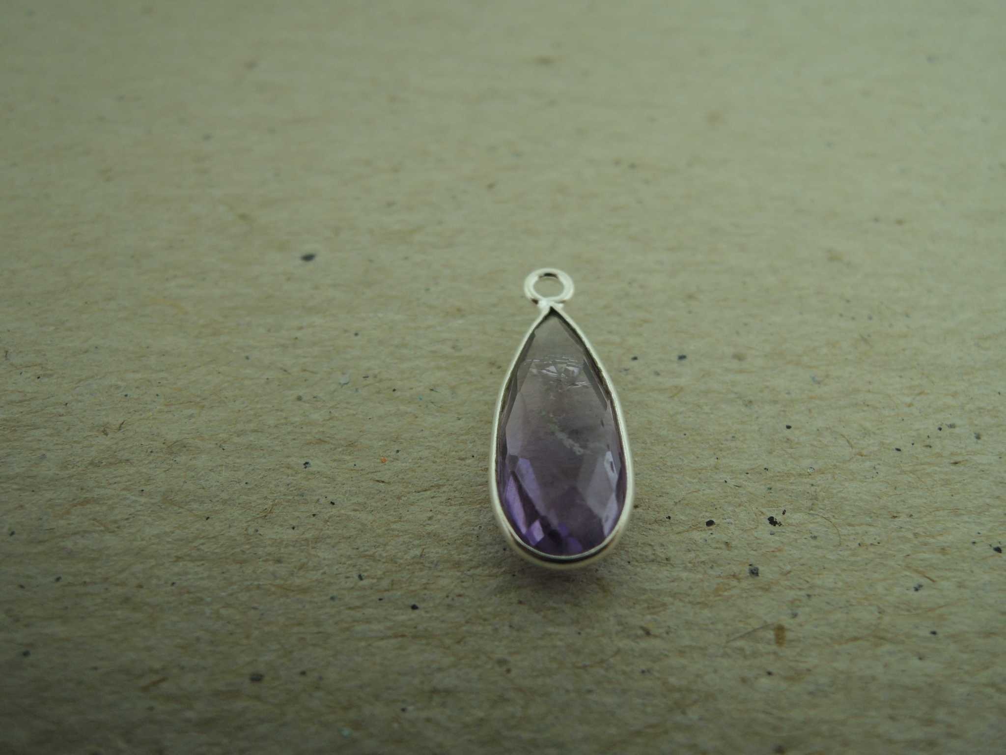 QSF190 HANGER IN KAST Ag925 PAARS 16X7MM DRUPPEL AMETHIST MET OOG TOP