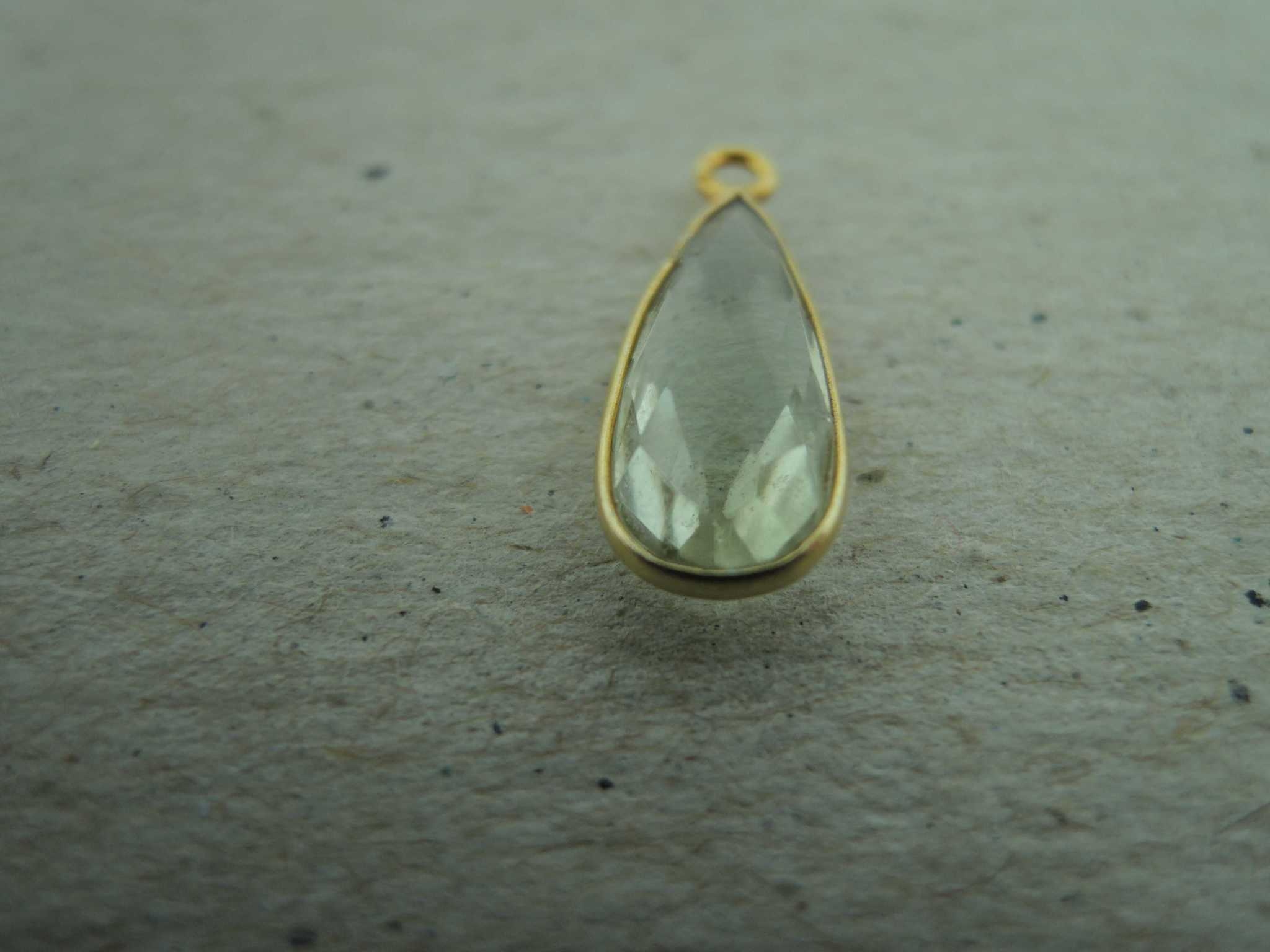 QSF200 HANGER IN KAST Ag925 VERGULD GROEN 16X7MM DRUPPEL AMETHIST MET OOG TOP