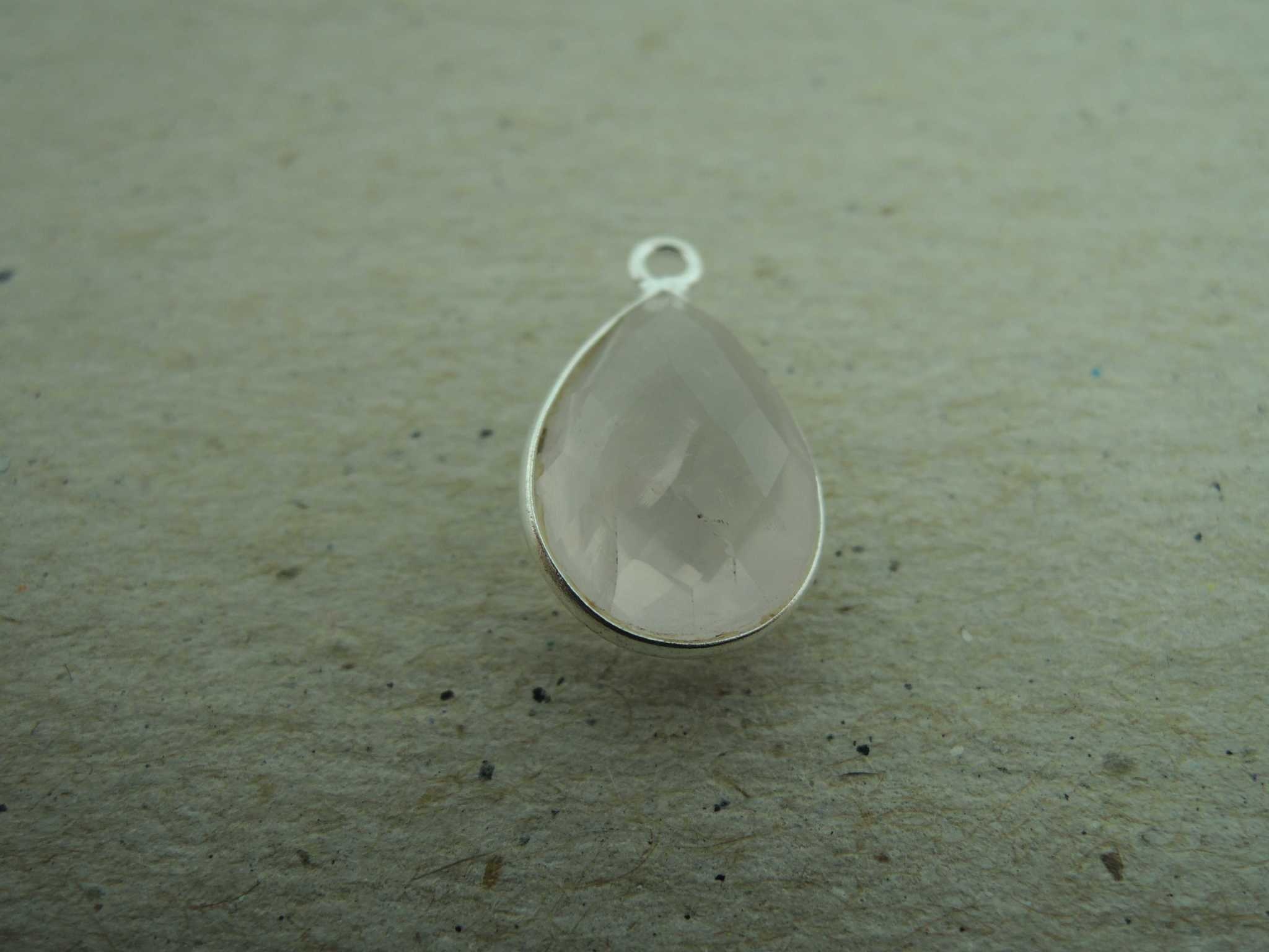 QSF217 HANGER IN KAST Ag925 15X10MM DRUPPEL ROSE QUARTZ MET OOG TOP