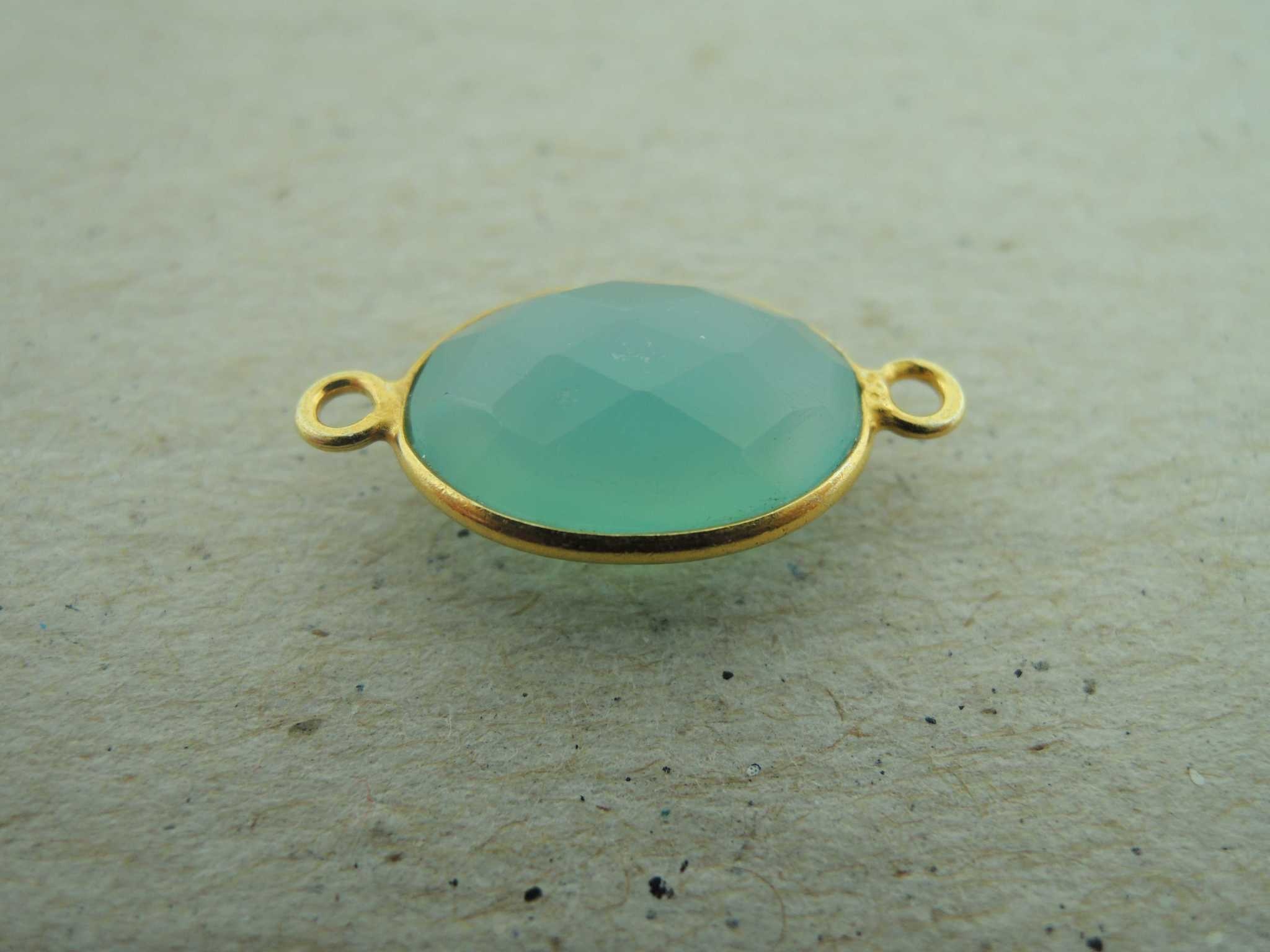 QSF231 HANGER IN KAST Ag925 VERGULD AQUA 15X11MM OVAAL CHALCEDOON MET 2 OGEN