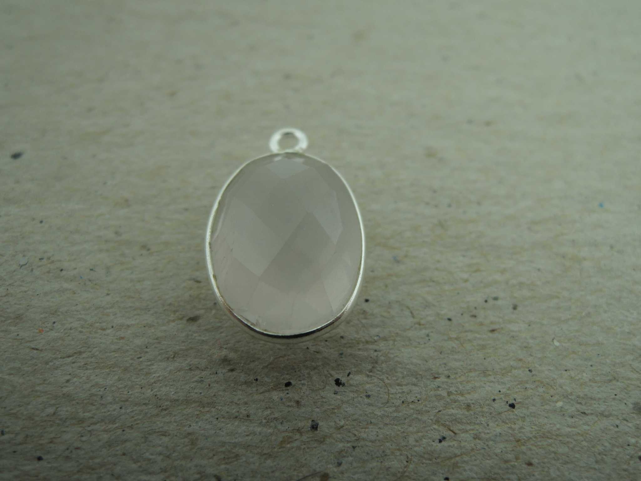 QSF238 HANGER IN KAST Ag925 ROSE 15X11MM OVAAL ROSE KWARTS MET 1 OOG TOP