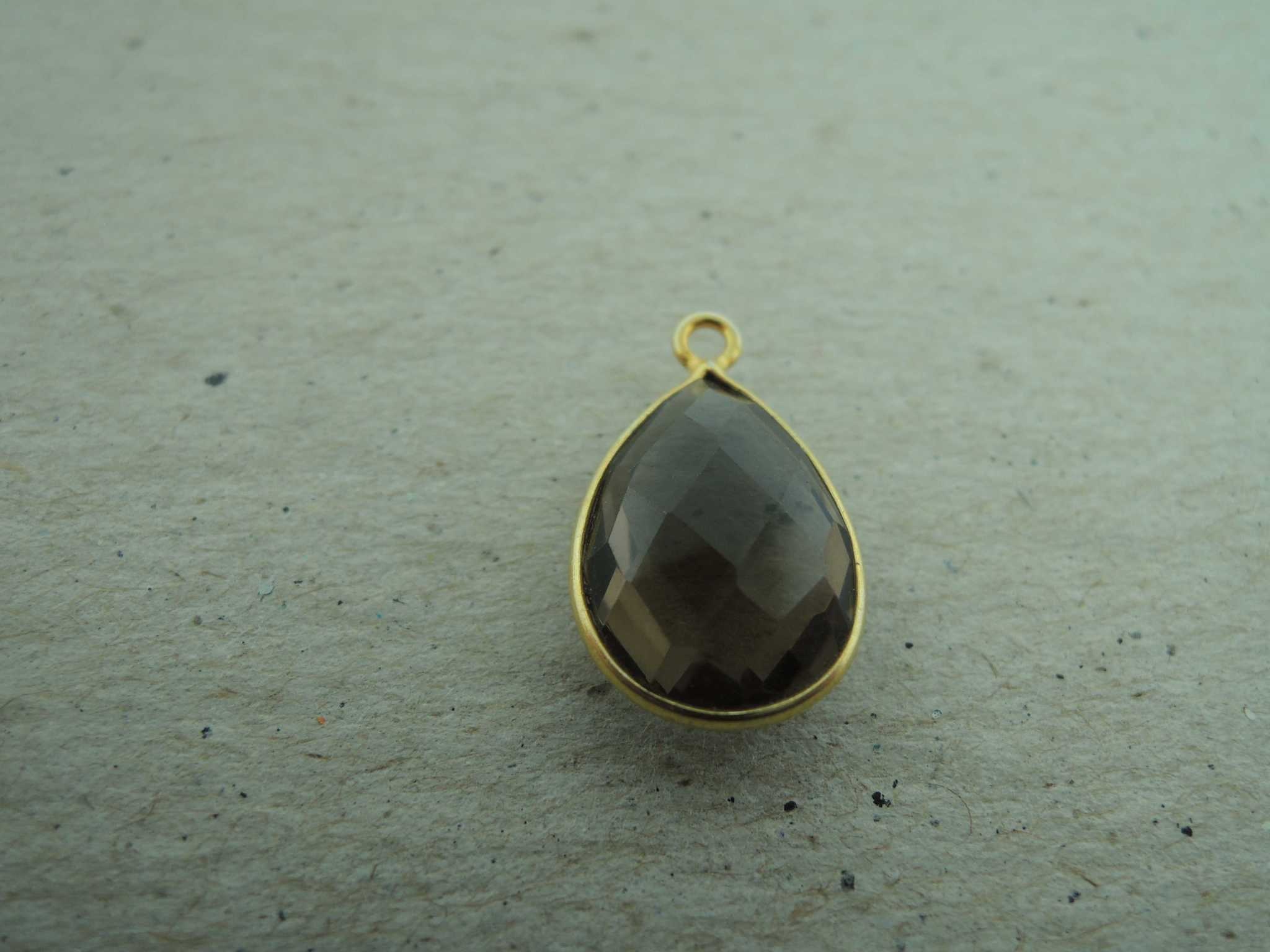 QSF246 HANGER IN KAST Ag925 VERGULD BRUIN 15X10MM DRUPPEL ROOKKWARTS MET OOG TOP