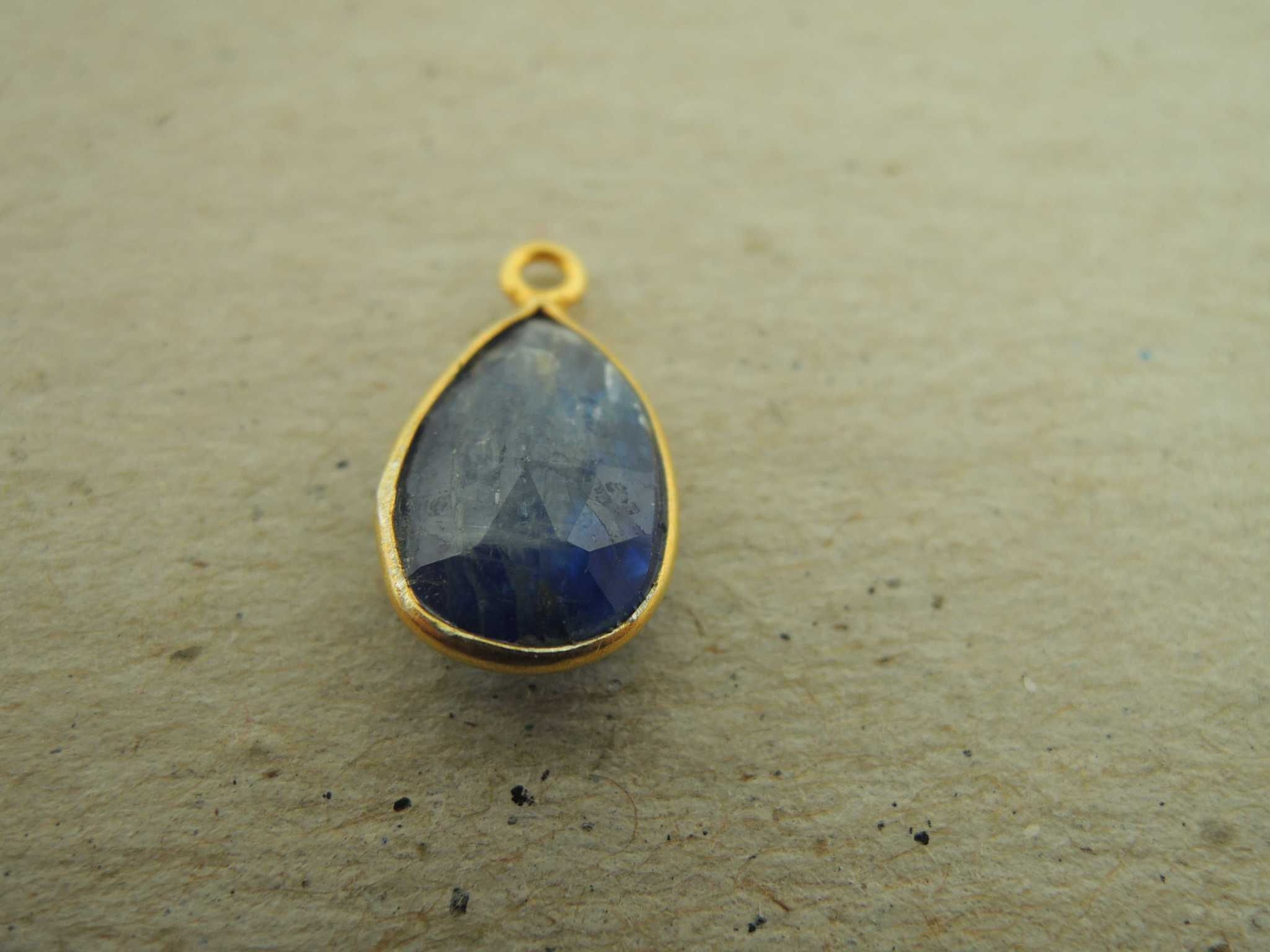 QSF259 HANGER IN KAST Ag925 VERGULD BLAUW KYANIET 12X8MM DRUPPEL MET OOG TOP