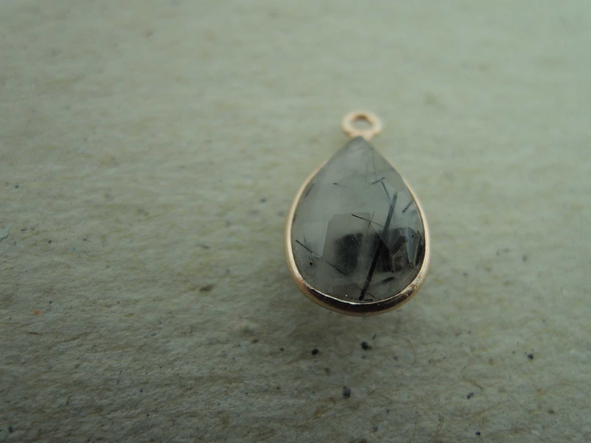QSF267 HANGER IN KAST Ag925 VERGULD ROSE WIT/ZWART RUTIELKWARTS 12X8MM DRUPPEL MET OOG TOP