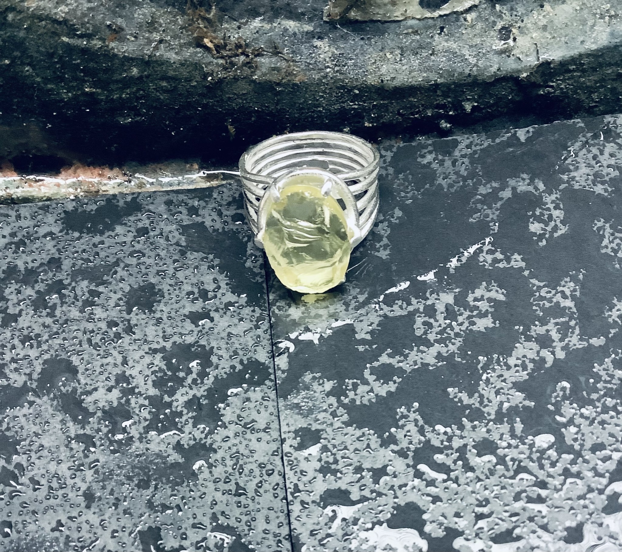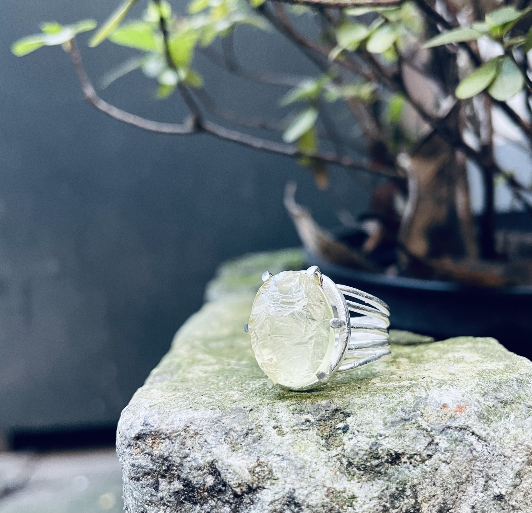 RZ0326 RING Ag925 LEMON TOPAAS GEEL 17X12MM OVAAL RUW GEEN FACET