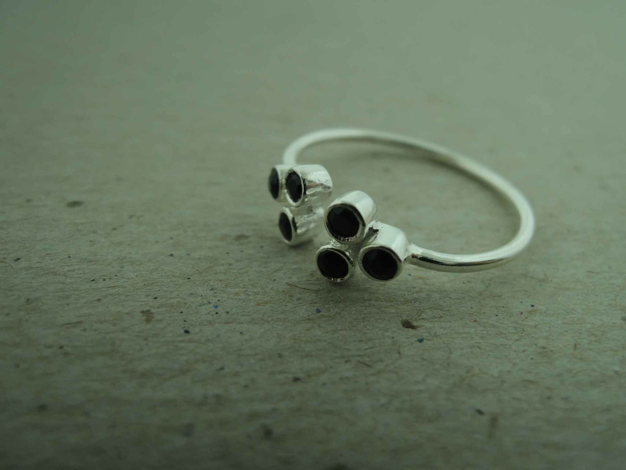 RZ0354 OPEN RING Ag925 ONIX ZWART 6 STEENTJES ROND