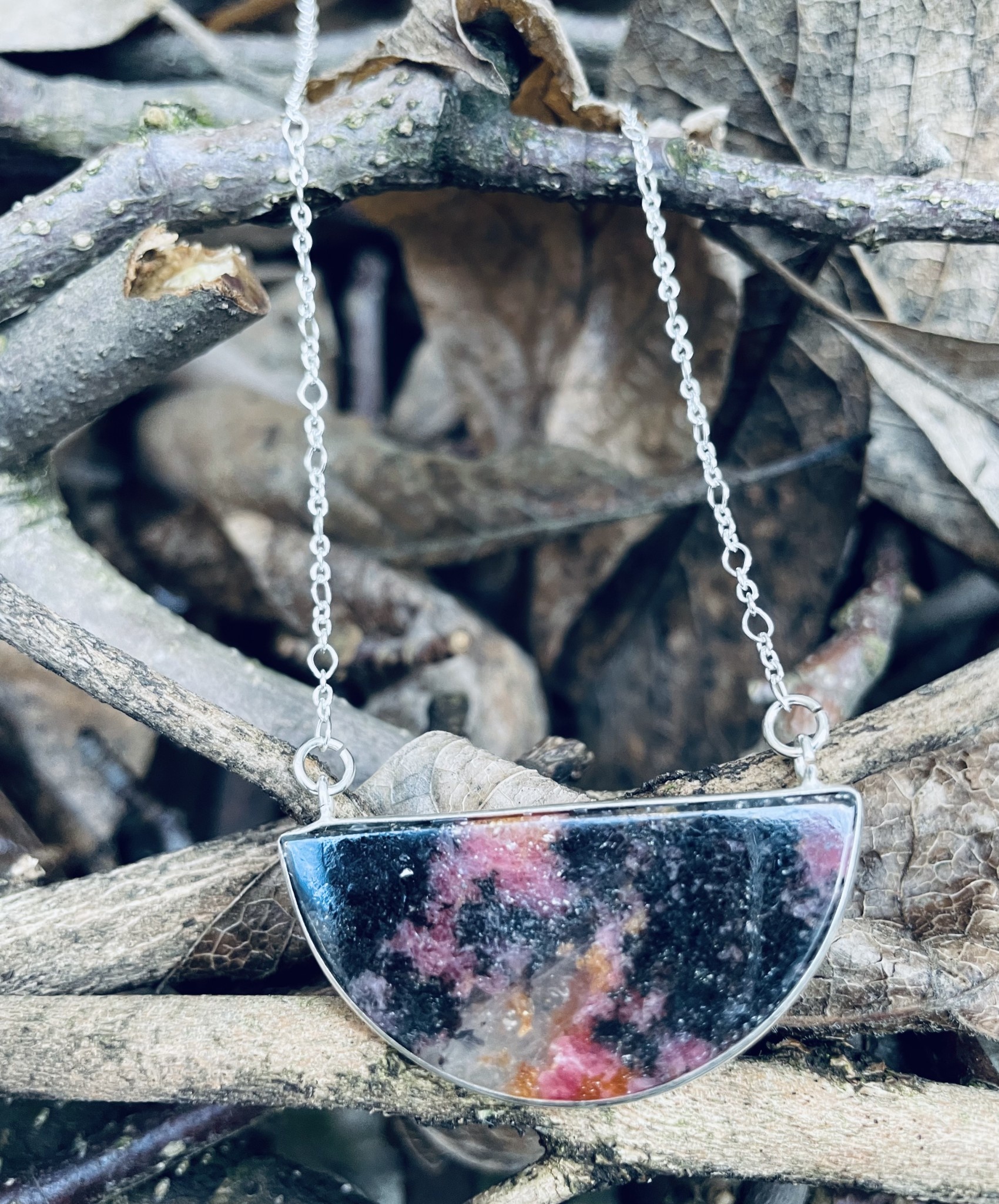 HZ0022 HANGER Ag925 RODONIET ROOS 40X20MM HALVE MAAN MET 2 OGEN