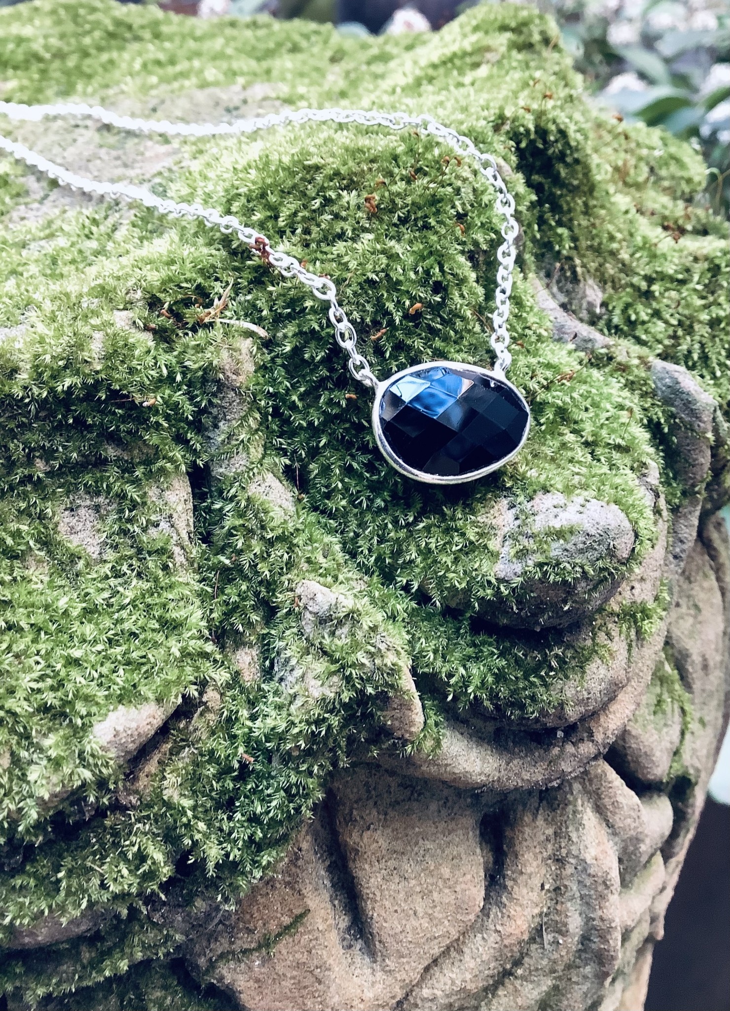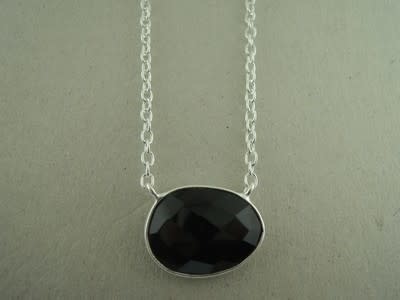 KZ0037 Ag925 KETTING ONIX ZWART 20X15MM OVAAL 2 OGEN