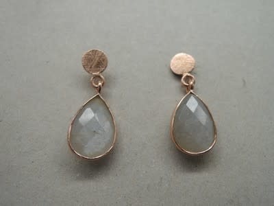 OR0117 OORSTEKER Ag925 VERGULD ROSE MAANSTEEN GRIJS 12X9MM DRUPPEL+ROND