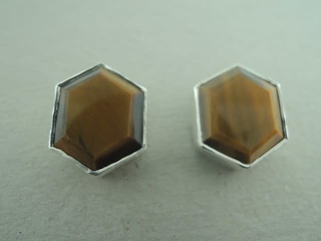 OZ0749 OORSTEKER TIJGEROOG BRUIN 14MM ZESHOEK