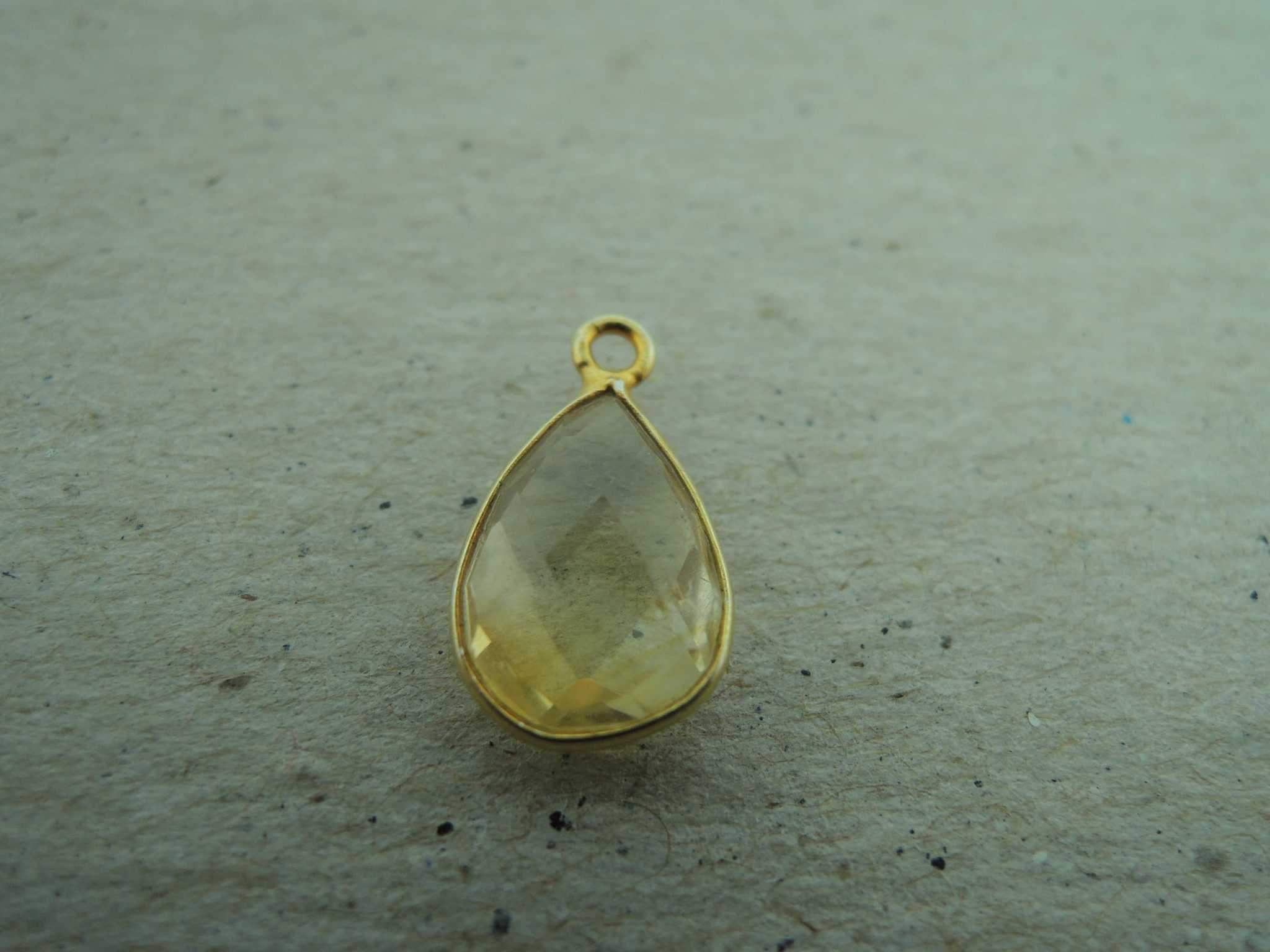 QSF260 HANGER IN KAST Ag925 VERGULD GEEL CITRIEN 12X8MM DRUPPEL MET OOG TOP
