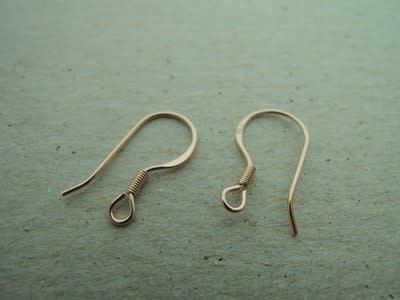 REAHO02 (per 10 paar) OORHAAK Ag925 VERGULD ROSE 16MM MET VEERTJE EN OPEN OOG