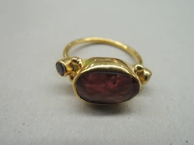RG0001 RING Ag925 VERGULD GRANAAT/IOLIET ROOD/BLAUW 12X10MM OVAAL