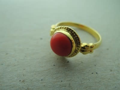 RG013 RING Ag925 VERGULD KORAAL ROOD 9MM ROND